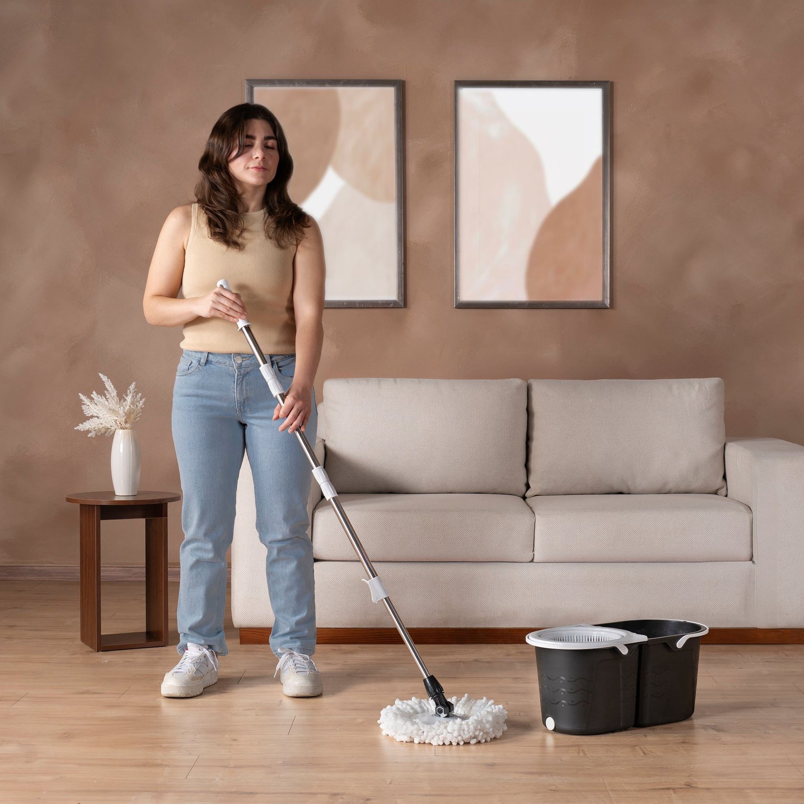 -Cabezal giratorio: El cabezal del mop rota 360°, permitiéndote limpiar en todas direcciones sin necesidad de esfuerzo adicional.